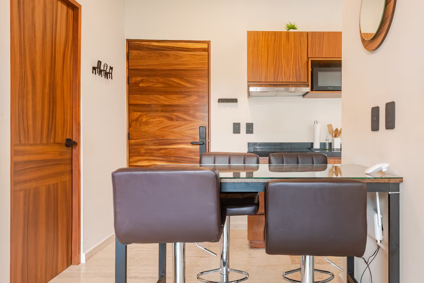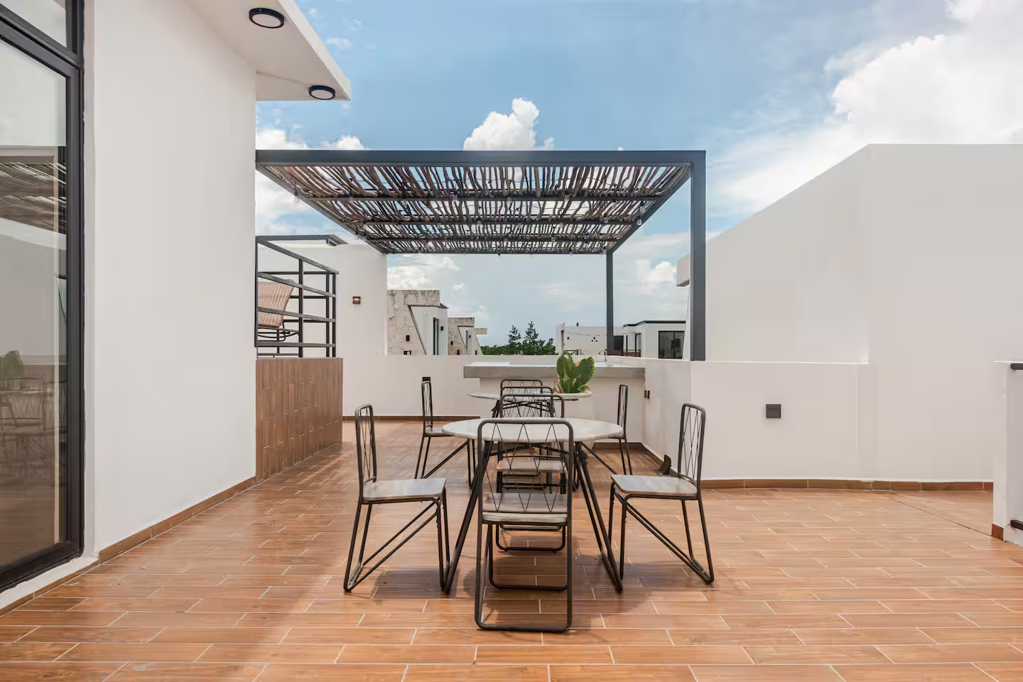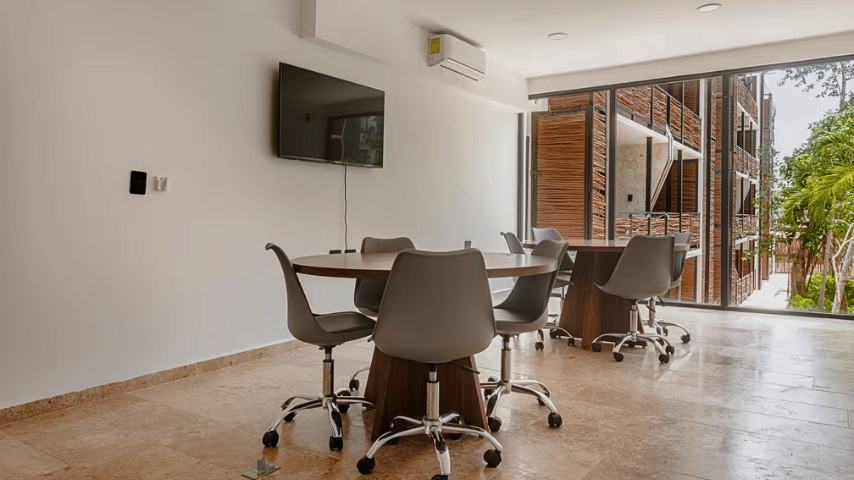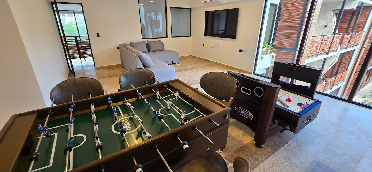 Condo-Hotel, con servicios de Lavandería ya incluida, Recepción, Vigilancia 24/7, Elevador, 2 Albercas tipo Cenote y 1 Alberca en el Techo tipo infinita, Rooftop, Gimnasio, Ludoteca, Sala de Cine, Sala de Juegos, Sala de Negocios.