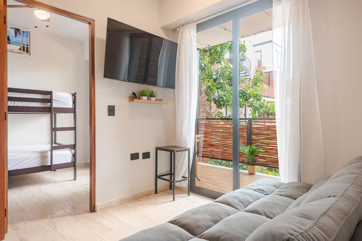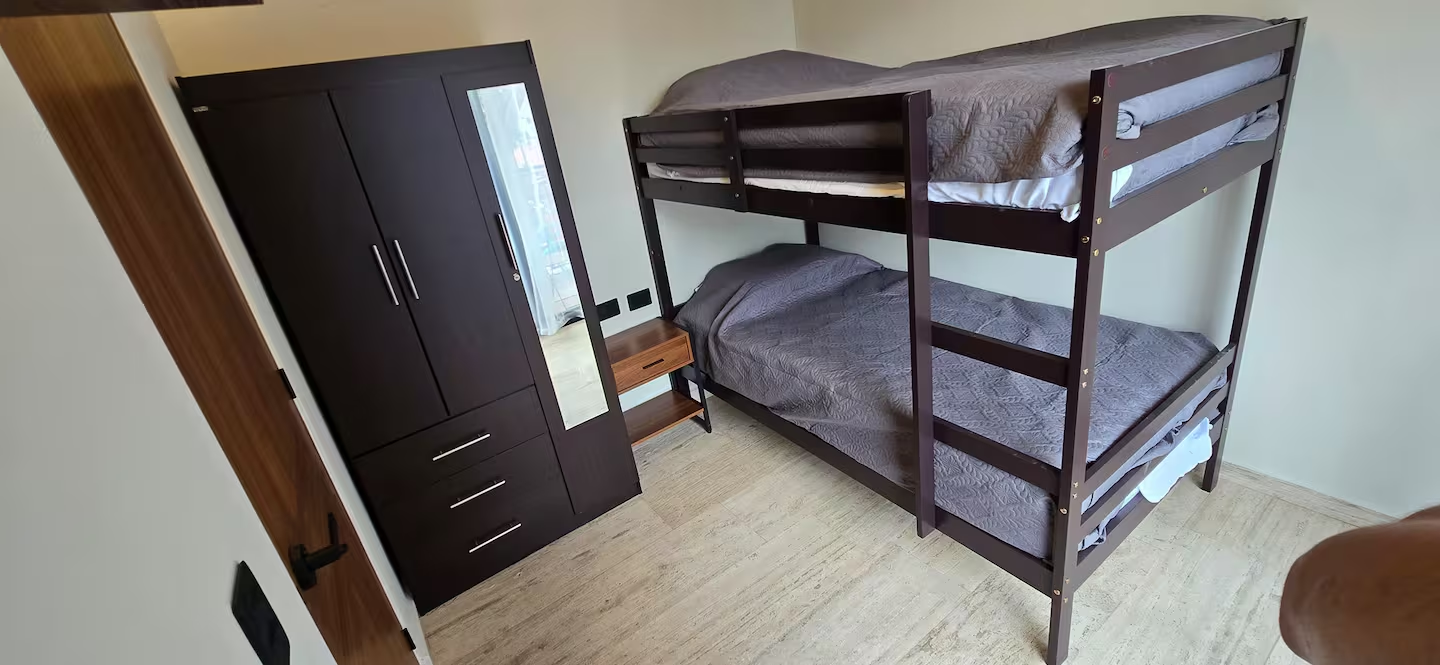Excelente y Nuevo departamento, 2 recamaras 1 cama King Size, 1 litera con 2 camas individuales, 1 Sofá Cama, la renta incluye 2 bicicletas para facilitar tu movilidad. A 8 min de la playa